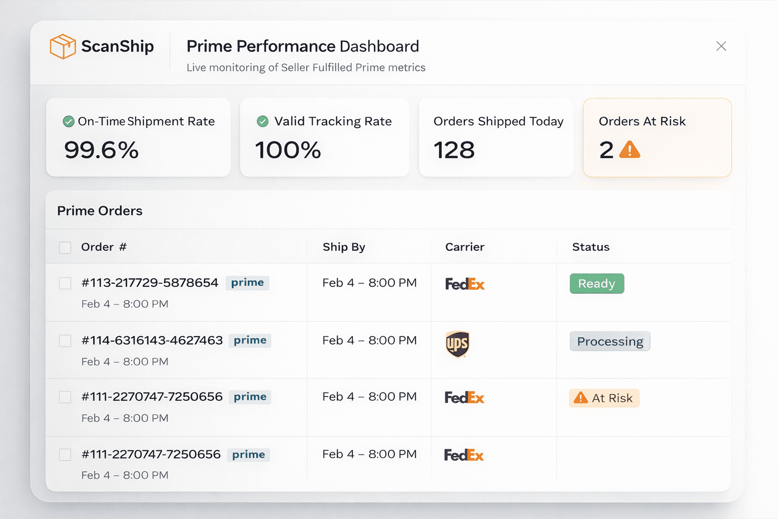 SmartShipped structures Prime fulfillment around these metrics to reduce risk exposure and protect account health.
